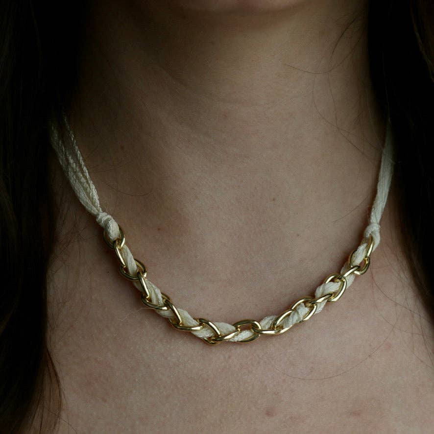 We are loving the scarf necklace trend and decided to do a take on that with our gorgeous silk cords. A dramatic way to layer in your gold chain!